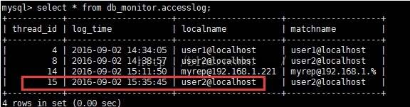 我們利用這一點,通過在init-connect的時候記錄下用戶的thread_id,用戶名和用戶地址實現db的訪問審計功能。