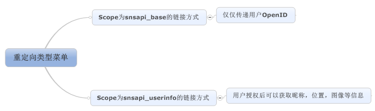 在前面一系列文章中,我們可以看到微信自定義菜單的重要性,可以說微信公眾號賬號中,菜單是用戶的第一印象,我們要規劃好這些菜單的內容,布局等信息。根據微信菜單的定義,我們可以看到,一般菜單主要分為兩種,一種是普通的Url菜單(類型為View的菜單),一種是事件菜單(類型為Click的菜單),一般情況下,微信的Url菜單,是無法獲得用戶的任何信息的,但微信用戶信息非常重要,因此也提供了另外一種方式(類似重定向的方式)來給我們使用,本篇主要介紹這種重新定向的方式菜單的使用,以使我們能夠盡可能和用戶進行交互。