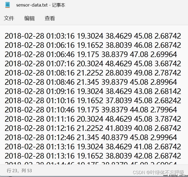打開txt文件可以發現,每行都有一串包含日期、時間、溫度、濕度光照和電壓的數據,用空格隔開,我們可以使用一個二維列表,每次讀取一行,根據空格分開,存到一個一維列表中去,然後將一維列表放入二維列表。在遍歷完文件之後,我們已經將數據全都存放到二維列表中去了,接下來就遍歷這個二維列表,先定義一個max=0,min=10000,然後如果遍歷的時候遇到比max的大的數,就更新max,如果遇到比min小的數,就更新min,另外我們用sum加上所有的數據,並且記錄數據的個數,最後只需要輸出max和min就可以得到最大值和最小值,輸出sum/cnt就可以得到平均值,我們可以通過%.2f控制保留小數點後兩位。最後記得要關閉文件!
