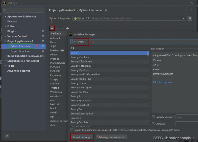 2,安裝對應的依賴 Scrapy