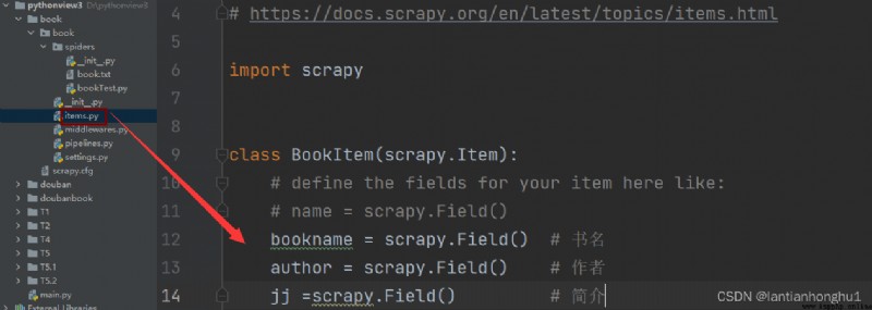 2,在items.py文件中添加需要爬取的內容
