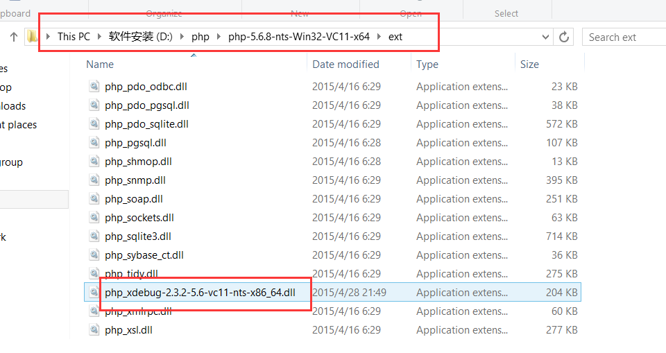 將下載下來xdebug的解壓文件復制到php目錄的ext文件夾中