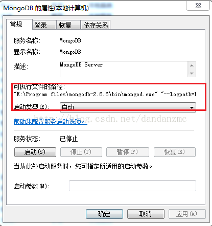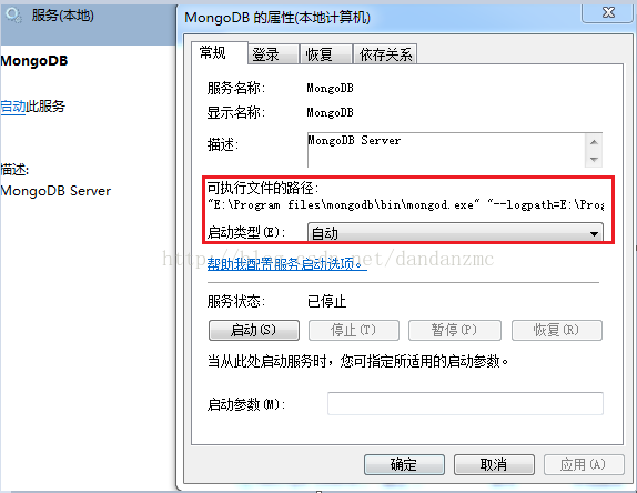 查看服務屬性,Mongo的地址是已經刪除了的個地址,而不是當前我用的這個地址。當前用的地址是:E:\Program files\mongodb\bin
