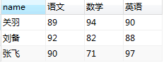 SELECT `name`, MAX( CASE WHEN course='語文' THEN score END ) AS 語文, MAX( CASE WHEN course='數學' THEN score END ) AS 數學, MAX( CASE WHEN course='英語' THEN score END ) AS 英語 FROM student GROUP BY `name` ;
