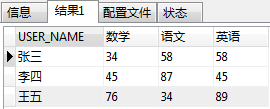 SELECT user_name , MAX(CASE course WHEN '數學' THEN score ELSE 0 END ) 數學, MAX(CASE course WHEN '語文' THEN score ELSE 0 END ) 語文, MAX(CASE course WHEN '英語' THEN score ELSE 0 END ) 英語 FROM test_tb_grade GROUP BY USER_NAME;
