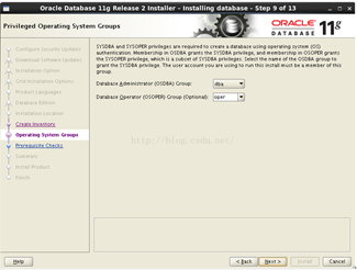 在databaseadministrator group上選擇dba,在databaseoperator group上面選擇oper,然後net下一步,如009.png所示:
