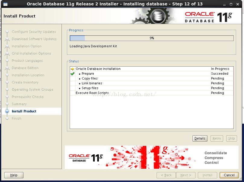 然後選擇install安裝,開始安裝oracle軟件,如011.png所示: