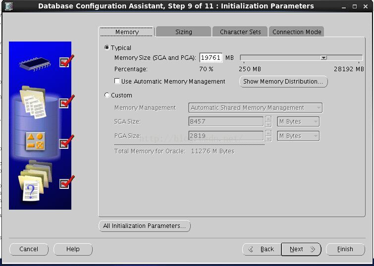 配置sga、pga,默認是40%,這裡因為是專用的db服務器,可以調整到70%,如031.png所示:
