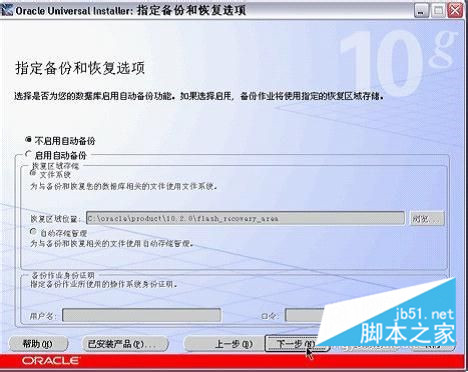 指定備份和恢復選項(使用默認選項不啟用自動備份即可),按下一步按鈕