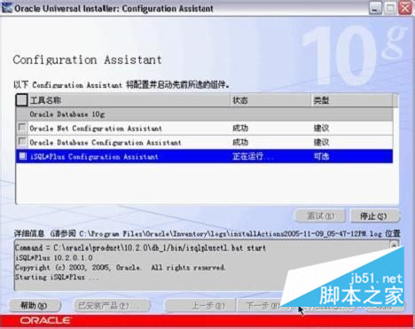 經過數分鐘的文件安裝過程之後,開始執行數據庫配置助手