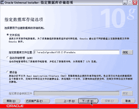 指定數據庫存儲選項(使用默認選項文件系統即可),按下一步按鈕