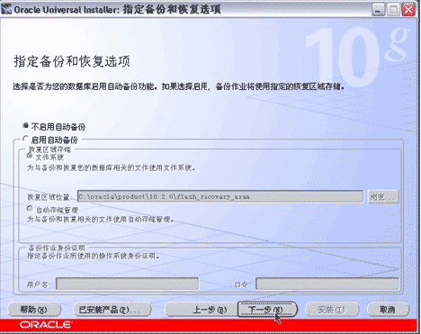 指定備份和恢復選項(使用默認選項不啟用自動備份即可),按下一步按鈕