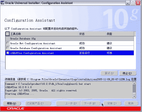 經過數分鐘的文件安裝過程之後,開始執行數據庫配置助手