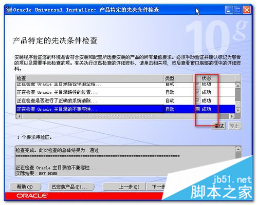查看檢查結果,狀態為成功即可點擊【下一步】進行安裝。