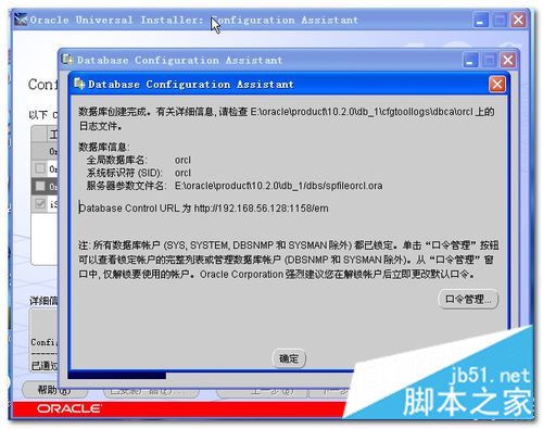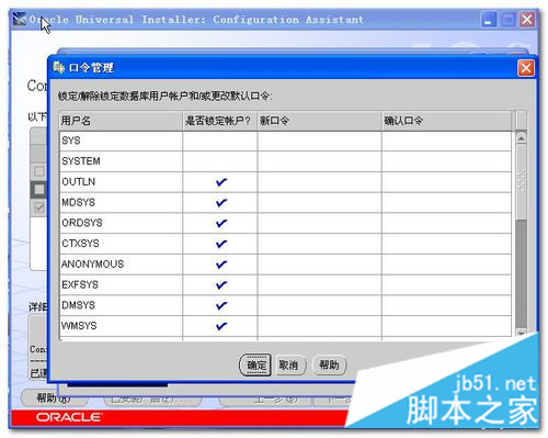 點擊【口令管理】,打開口令管理對話框,如圖,設置sys,和system用戶密碼, 可以設置為一樣