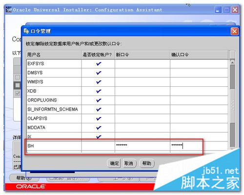找到sh,scott,將鎖定賬號的勾去掉,並設置密碼