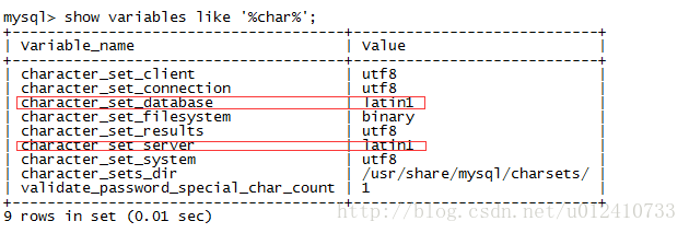 這裡我們可以看character_sert_database與character_set_server的字符集都是latin1.那麼在mysql數據庫中,server,database,table的字符集都默認是latin1.下面我們就來看看如何解決mysql亂碼情況。