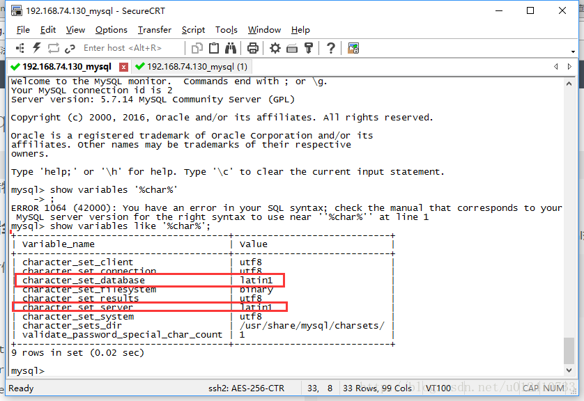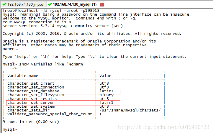當我們數據庫重啟的時候,你們發現設置global范圍的值又變成latin1了。