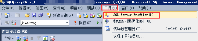 打開 SSMS,點擊<工具>,選擇 <SQL Server Profiler>,如下圖。
