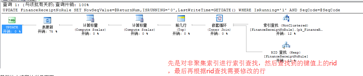 是哪個索引,可以根據sys.partitions 可以查看到72057594038910976是主鍵pk_FinanceReceiptNoRule,主鍵列是:SeqCode。假設這個時候,會話1 中又執行了一次update操作(同一個事務中):