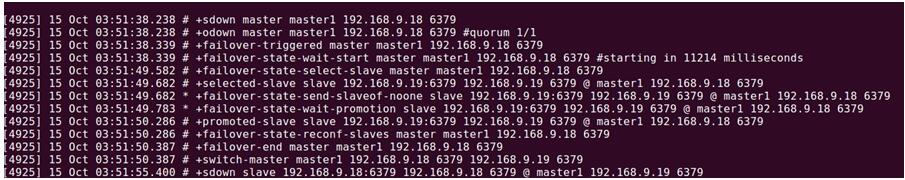 failover-end <instance details> :故障轉移操作順利完成。所有從服務器都開始復制新的主服務器了。