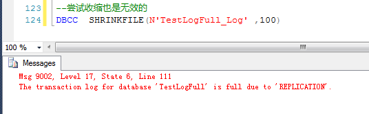 此時嘗試收縮也是無效的,因為日志都是出於活動狀態,活動狀態的日志是無法收縮的