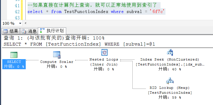 如果直接在計算列上查詢,就可以正常地使用到索引了