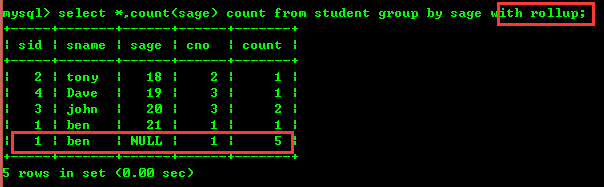 with rollup 是可選語法,表示是否對分類聚合後的結合在進行匯總