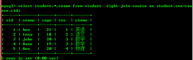 右連接(包含所有右邊表中的記錄甚至左邊表中沒有和它匹配的記錄)