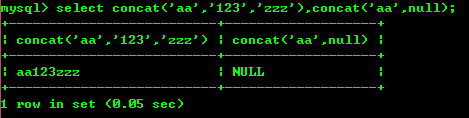 cancat函數:把傳入的參數連成一個字符串,任何字符串和null進行拼接的結果都是null,如下圖