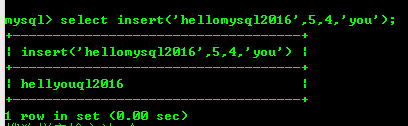 8.2:insert(str,x,y,instr)函數,將字符串str從第X個位置開始,y個字符長的字符串替換成instr下面把字符串hellomysql2016的第5個字符後面的4個字符替換成you